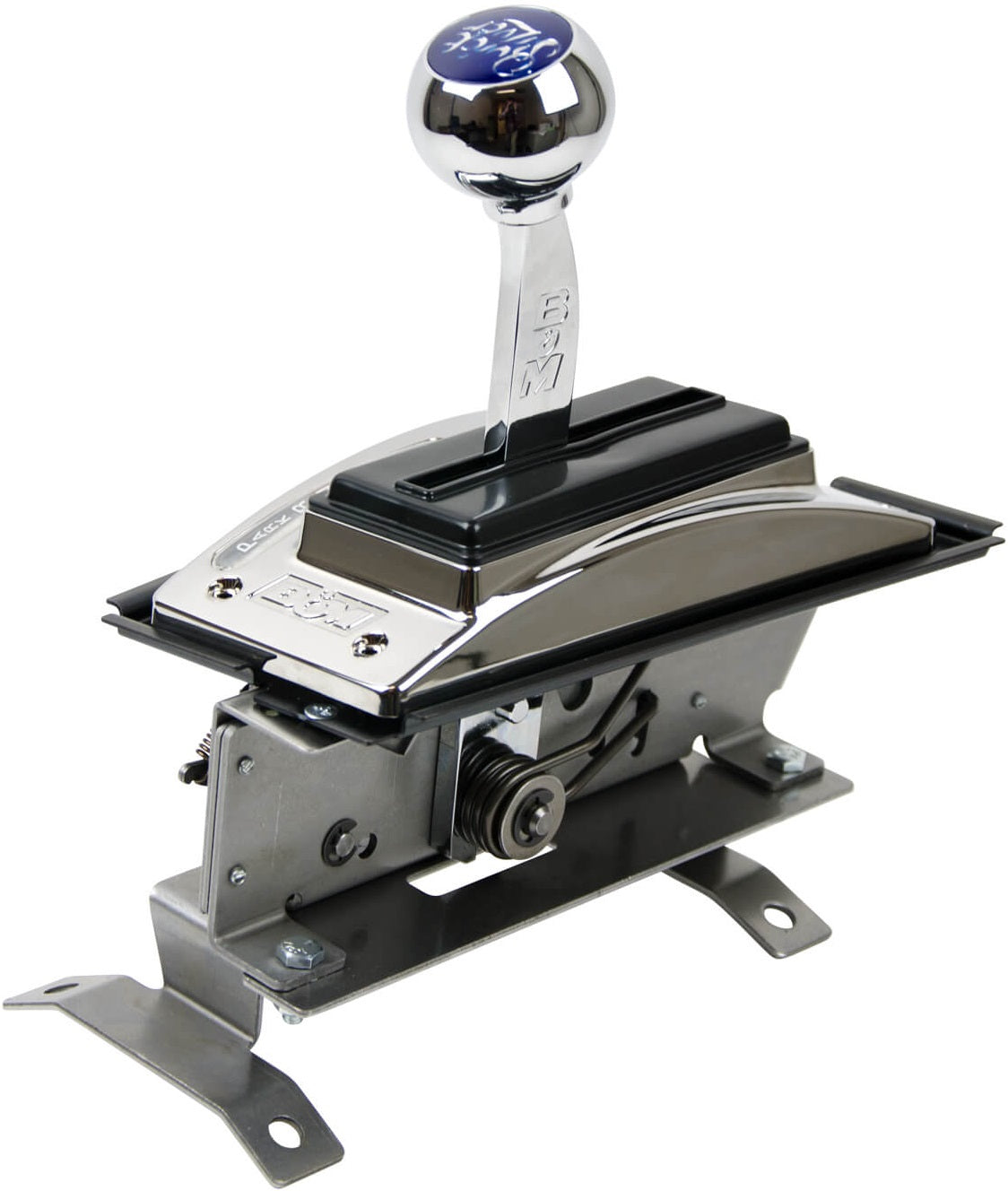 TO USE THE RATCHETING FUNCTION AT THE STRIP, SHIFT INTO LOW GEAR, LAUNCH THE VEHICLE & HIT THE SHIFTER FORWARD WHEN IT IS TIME TO SHIFT. YOU CANNOT OVER-SHIFT & MISS A GEAR. THE CHROME BEZEL, SHIFT STICK & KNOB ARE ALL ACCENTED BY THE BLACK BOOT & DEEP BLUE MEDALLION, GIVING YOUR SECOND-GEN CAMARO OR FIREBIRD INTERIOR THAT CLASSIC MUSCLE CAR STYLE, WHILE PROVIDING FAST & SMOOTH RATCHET SHIFTING. THE SHIFTER INCLUDES A LIGHTED GEAR POSITION INDICATOR IN THE BEZEL. ATTACHES TO THE FACTORY SHIFT CABLE & COMES WITH ALL HARDWARE, DETAILED INSTRUCTIONS & EVERYTHING NEEDED FOR AN EASY INSTALLATION YOU CAN DO AT HOME.