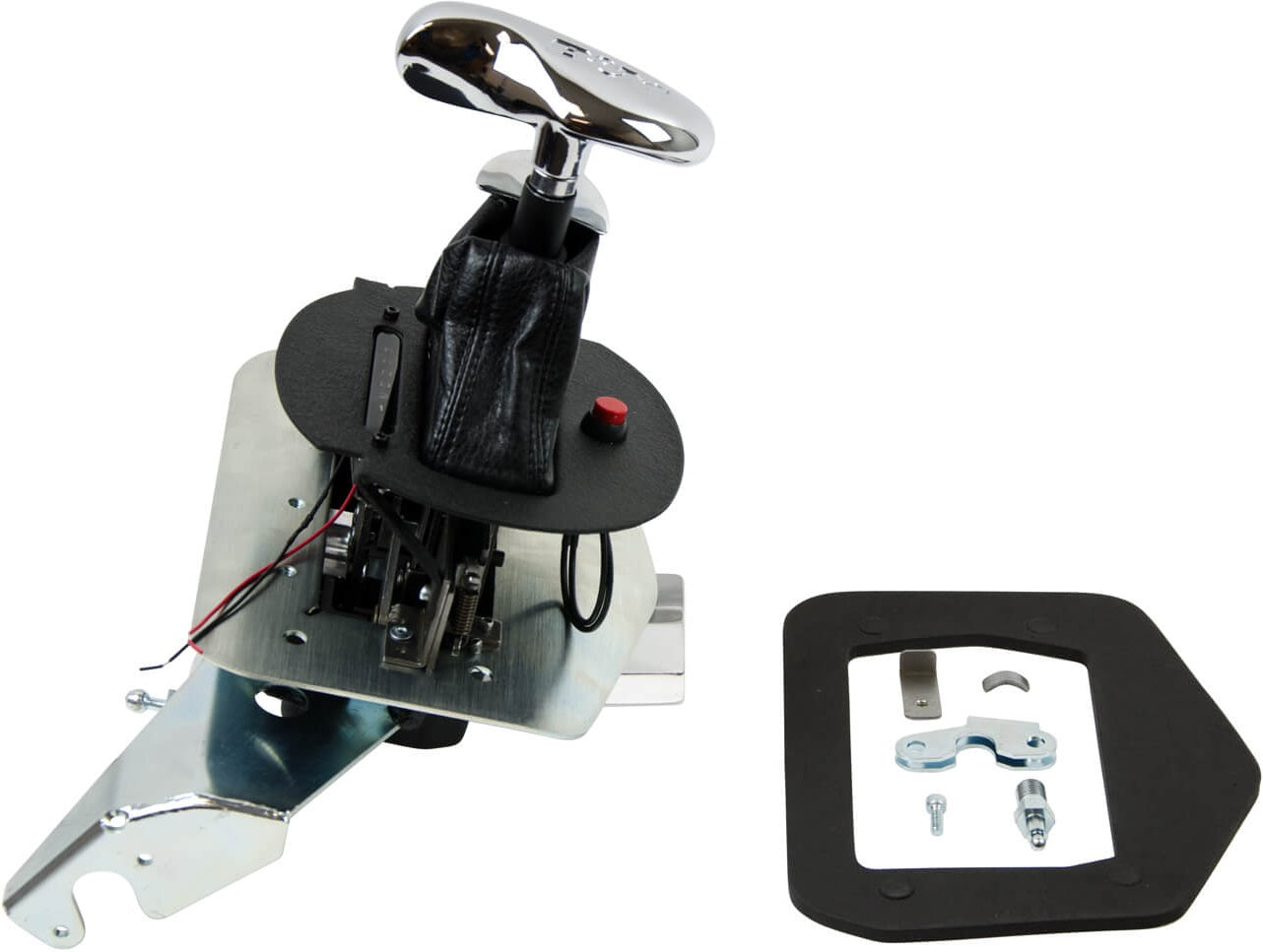 FEATURES A SMOOTH POSITIVE RATCHET ACTION, WHICH ONLY ALLOWS YOU TO SHIFT ONE GEAR AT A TIME. OTHER SAFETY FEATURES INCLUDE AN ILLUMINATED GEAR POSITION INDICATOR. INCLUDES SHIFTER, ALL NECESSARY HARDWARE, CONSOLE PLATE, BOOT, SHIFT HANDLE & INSTRUCTIONS FOR AN EASY INSTALL.