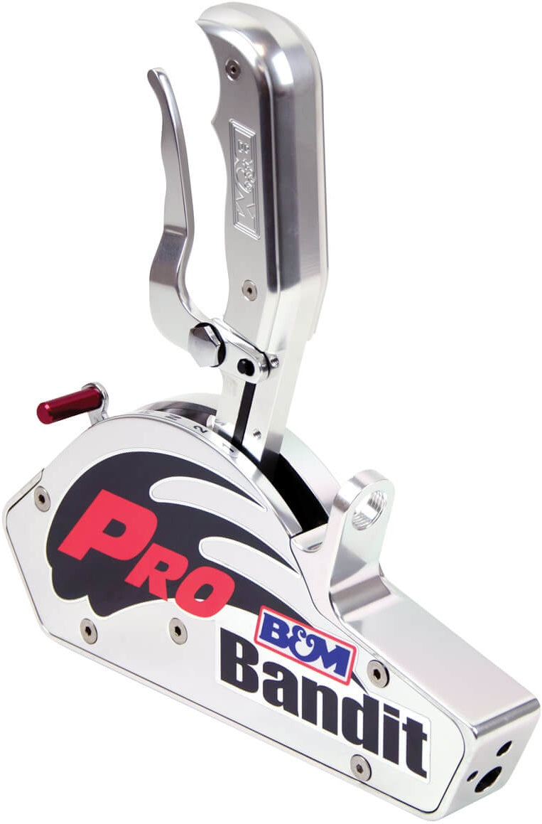 THE MAGNUM GRIP PRO BANDIT COMES SET UP FOR 2-SPEED POWERGLIDE TRANSMISSIONS & STARTS OUT AS A 7 LB. BLOCK OF 6061-T6 ALUMINUM. IT FEATURES CNC MACHINED CONSTRUCTION, ERGONOMICALLY SHAPED MAGNUM GRIP SHIFT HANDLE WITH REPLACEABLE SIDE GRIP PLATES, POLISHED & MATTE FINISH & REVERSE LOCKOUT MEETS NHRA/IHRA SAFETY RULES.
