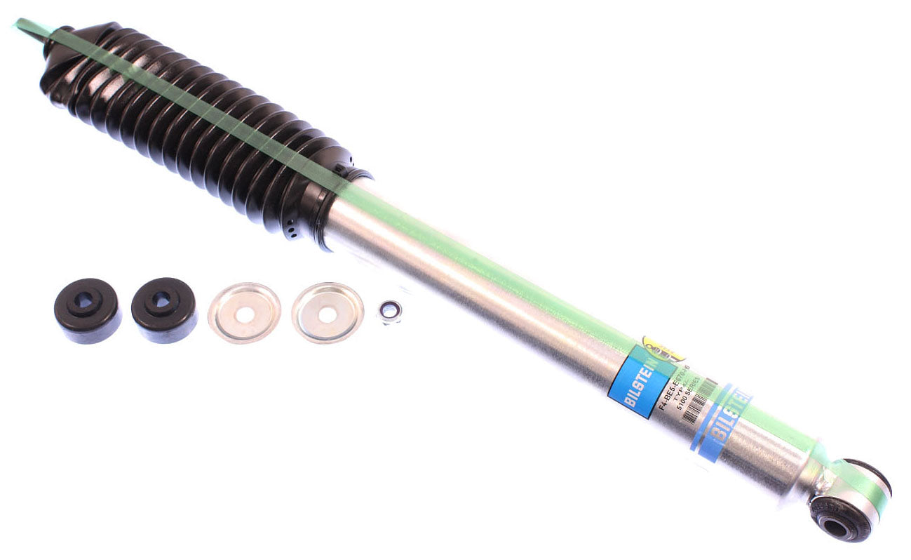 Bilstein 5100 Series Shock Absorbers are high gas pressure monotube shocks designed specifically for lifted pickups, SUVs and Jeeps. The shocks feature a 46mm digressive piston with self-adjusting deflective disc valving. They offer super damping ability that makes them ideal for heavy hauling or occasional off-road use, while maintaining an exceptional street ride.