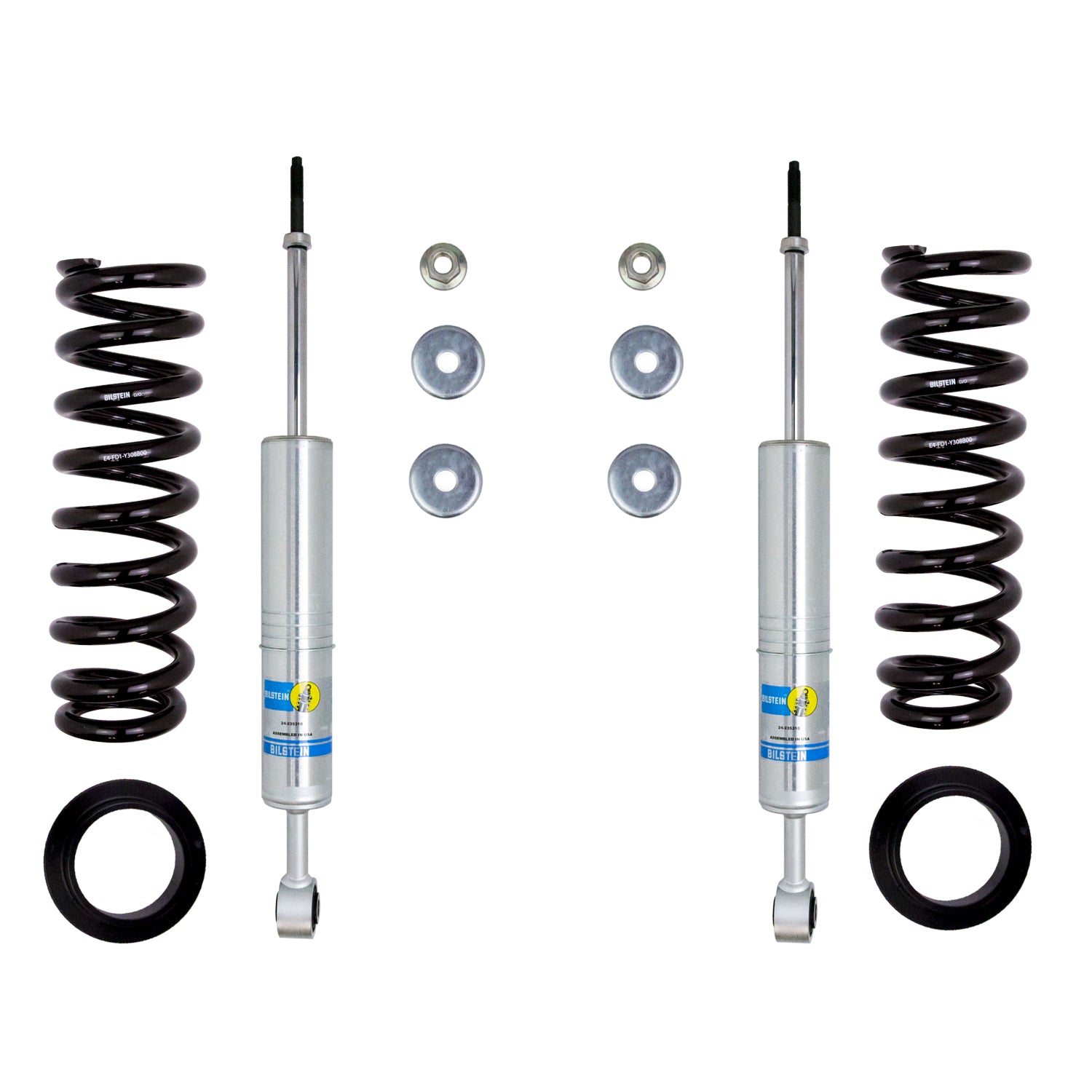 BILSTEIN B8 6112 LEVELING KITS ARE DESIGNED TO PROVIDE MORE GROUND CLEARANCE, ALLOW FOR LARGER TIRES, AND INCREASE WHEEL TRAVEL. MULTIPLE SNAP-RING GROOVES IN THE BODY ALLOW FOR DIFFERENT SPRING SEAT POSITIONS, PROVIDING 0-2.75 INCHES OF FRONT LIFT (DEPENDING ON APPLICATION). THESE KITS CONSIST OF (2) 60MM SHOCK ABSORBERS COMBINED WITH (2) CUSTOM MATCHED COLD WOUND COIL SPRINGS AND (2) BILLET ALUMINUM SPRING SEATS. THE LARGE 60MM DIGRESSIVE PISTON ALLOWS FOR INCREASED DAMPING CONTROL FOR OPTIMAL ON-ROAD AND OFF-ROAD CAPABILITIES. EXPERIENCE THE LEGENDARY BILSTEIN OFF-ROAD EXPERIENCE WITH THE BEST DIRECT FIT SPRING AND SHOCK KIT FOR YOUR LIGHT TRUCK OR SUV.