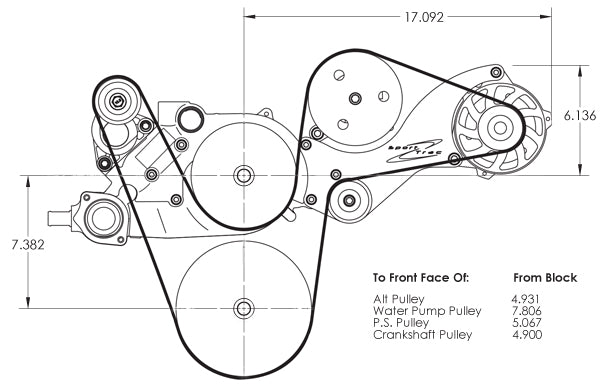 - BRAND NEW FRONT ENGINE BLACK SERPENTINE PULLEY SET FOR CHEVY LS ENGINES WITH ALTERNATOR, POWER STEERING PUMP, AND MORE. THIS KIT IS PRODUCED BY BILLET SPECIALTIES INC. (PART #12525).