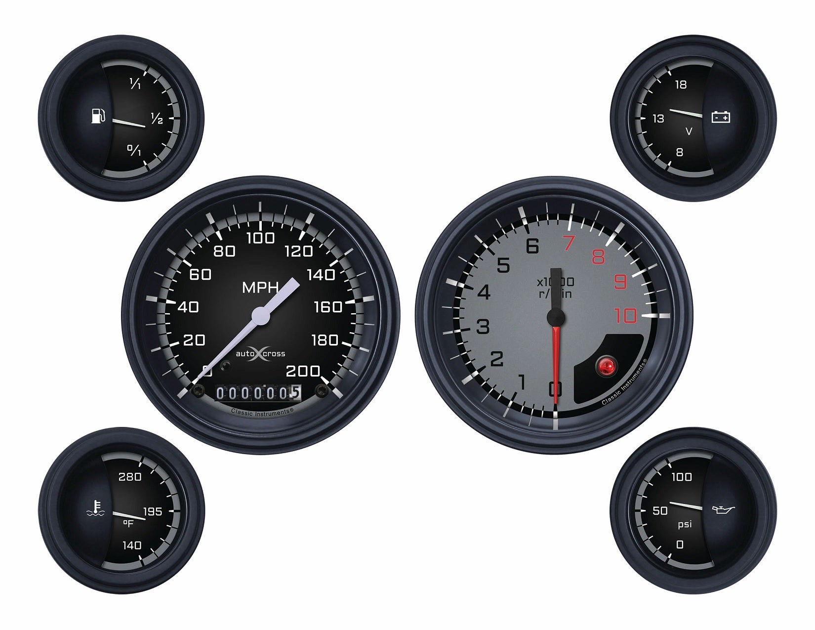 Brand New Classic Instruments Auto Cross Gray 6 Gauge Set (Part #AX01GBLF).