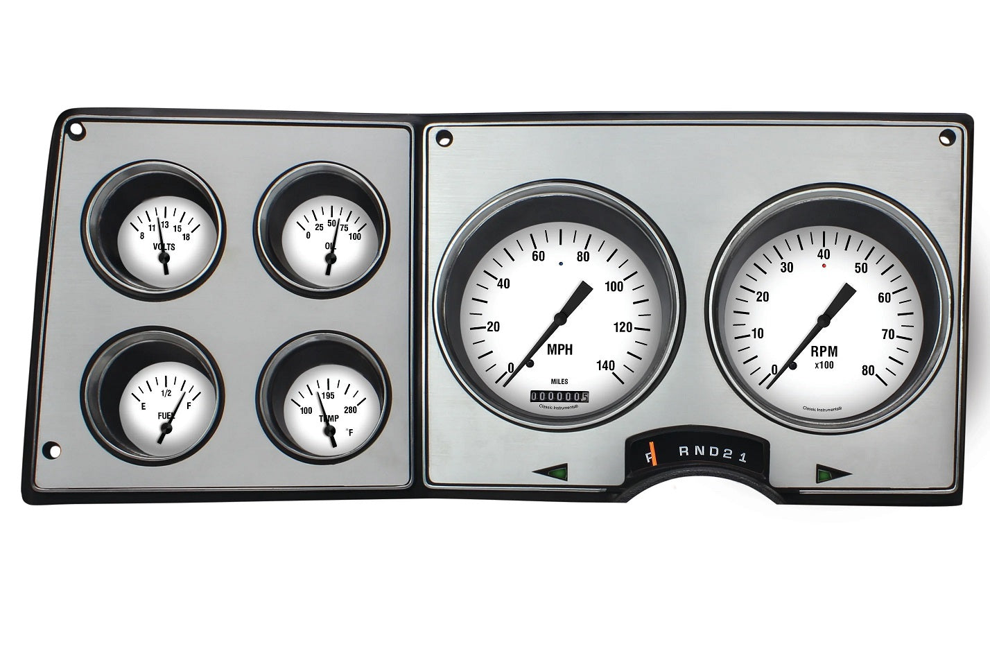 Brand New Classic Instruments White Hot Gauge Package, Compatible with 1973-1987 Chevy & GMC Trucks. Gauge has a Speedometer, Tachometer, Fuel, Oil, Temp, & Volt Gauges (Holley Part #CT73WH).