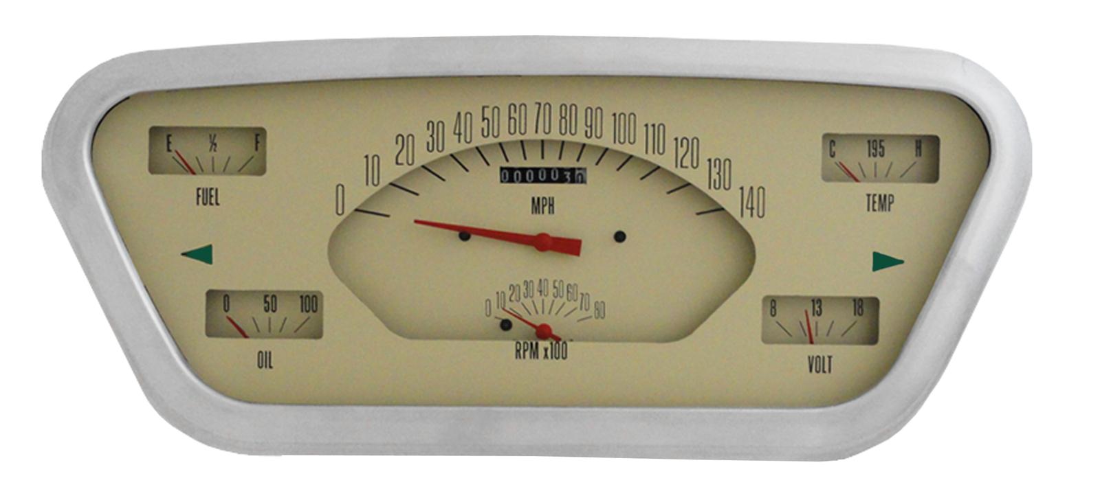 Brand New 1953-55 Ford F-100 Truck Tan 6-in-One package. Gauge has a Speedometer, Tachometer, Fuel, Oil, Temp, & Volt Gauges (Holley Part #FT53T).