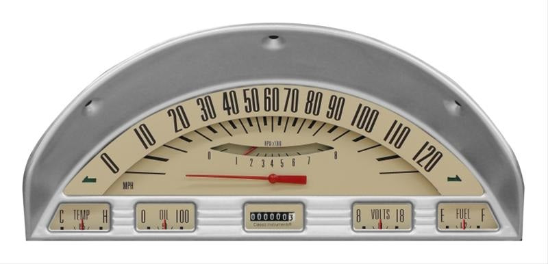 Brand New Classic Instruments Tan Package for 1956 Ford Truck. Gauge has a Speedometer, Tachometer, Fuel, Oil, Temp, & Volt Gauges (Holley Part #FT56TT).