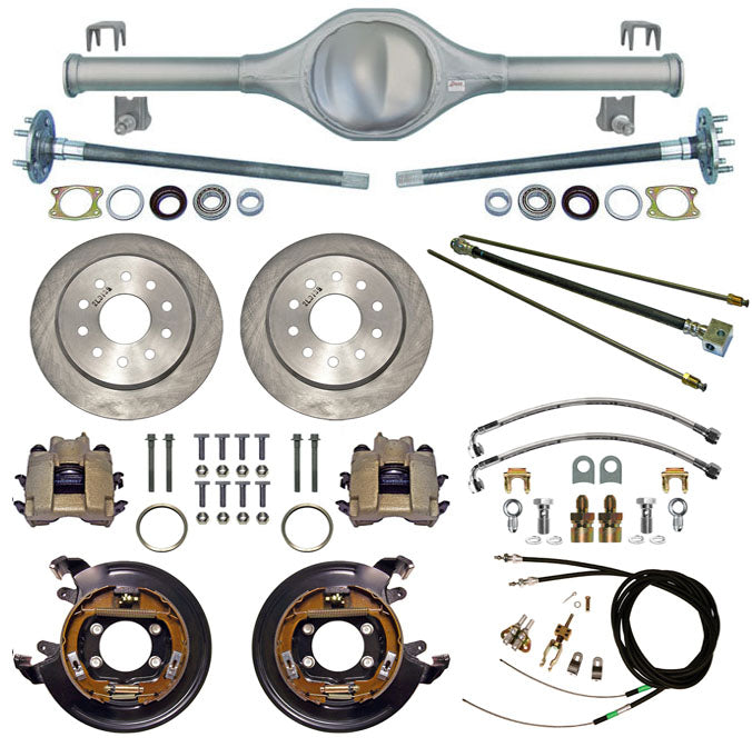 - THE AXLE FLANGES ON THIS REAR END ARE THE BIG BEARING FORD (NEW STYLE), ALSO KNOWN AS "TORINO", WHICH FIT THE CURRIE BRAKES PERFECTLY