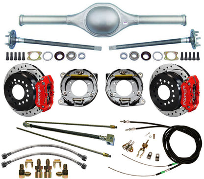 9" FORD 62" REAR END & WILWOOD BRAKES,11" DRILLED ROTORS,RED