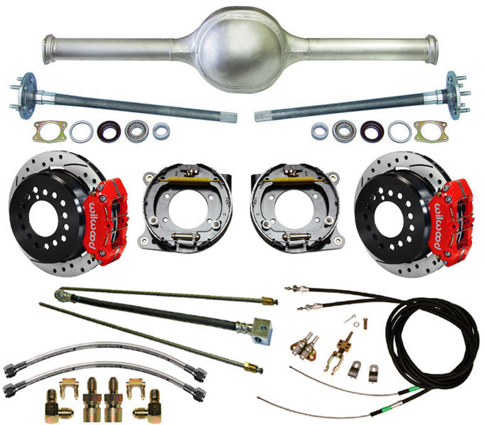 9" FORD 55" REAR END & WILWOOD BRAKES,11" DRILLED ROTORS,RED