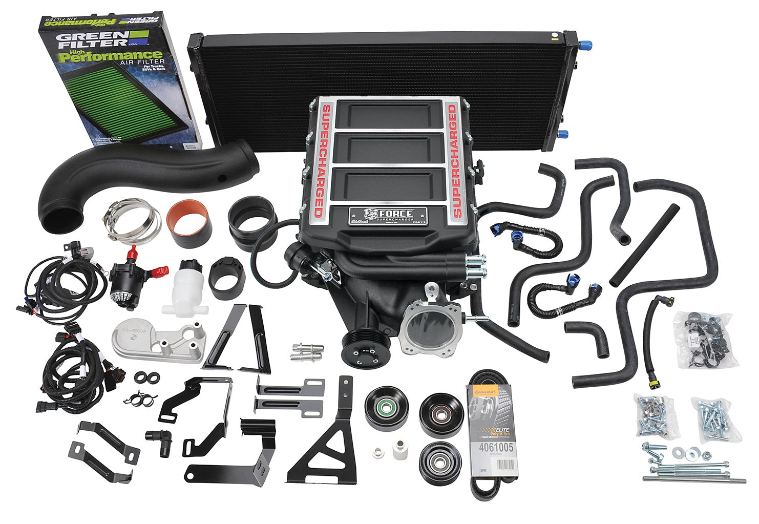 The Edelbrock supercharger Kit for the 6.2L V8 fits under the stock hood with absolutely no cutting or modifications required. And if you're concerned about the effect on MPG, the increase in power comes with little to no loss in fuel economy thanks to the supercharger's integrated bypass valve that mitigates parasitic power loss during normal driving. This new kit is a true bolt-on that requires no additional modifications to the stock 6.2L engine. For those who want more power, the R2650 supercharger can support more than 1,000 horsepower at the flywheel with the right combination of parts. This Edelbrock supercharger features a self-contained lubrication system with a 100,000-mile service interval with a high-capacity Dual-Pass 3-Core (DP3C) integrated intercooler and comes finished in a durable black powder-coating that blends nicely with the engine.