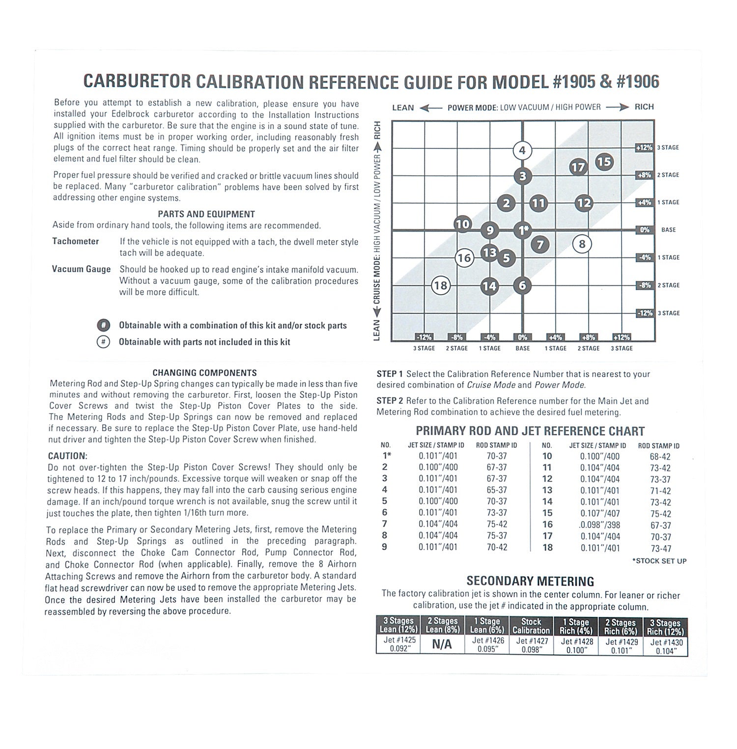 CALIBRATION KIT,EDELBROCK AVS2 650 SERIES,1905,1906