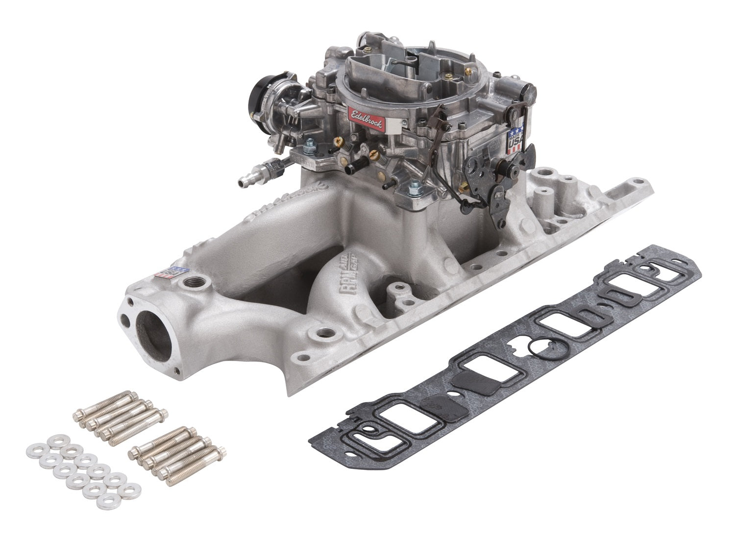 EDELBROCK INDUCTION KIT,SINGLE-QUAD MANIFOLD & CARB KIT,57-86 SMALL BLOCK CHEVY