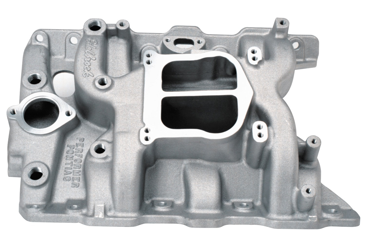 Edelbrock Performer Pontiac intake manifold is designed for 1965-79 Pontiac 326-455 C.I.D. V8's (except Ram Air V and 265/301 V8's). Edelbrock's Patented Dual-plane, low-rise design with a 180-degree firing order greatly improves torque over a wide rpm range for excellent throttle response from off-idle through 5500rpm. This Performer intake manifold is ideal for passenger cars, trucks, 4x4s, tow vehicles and RVs.