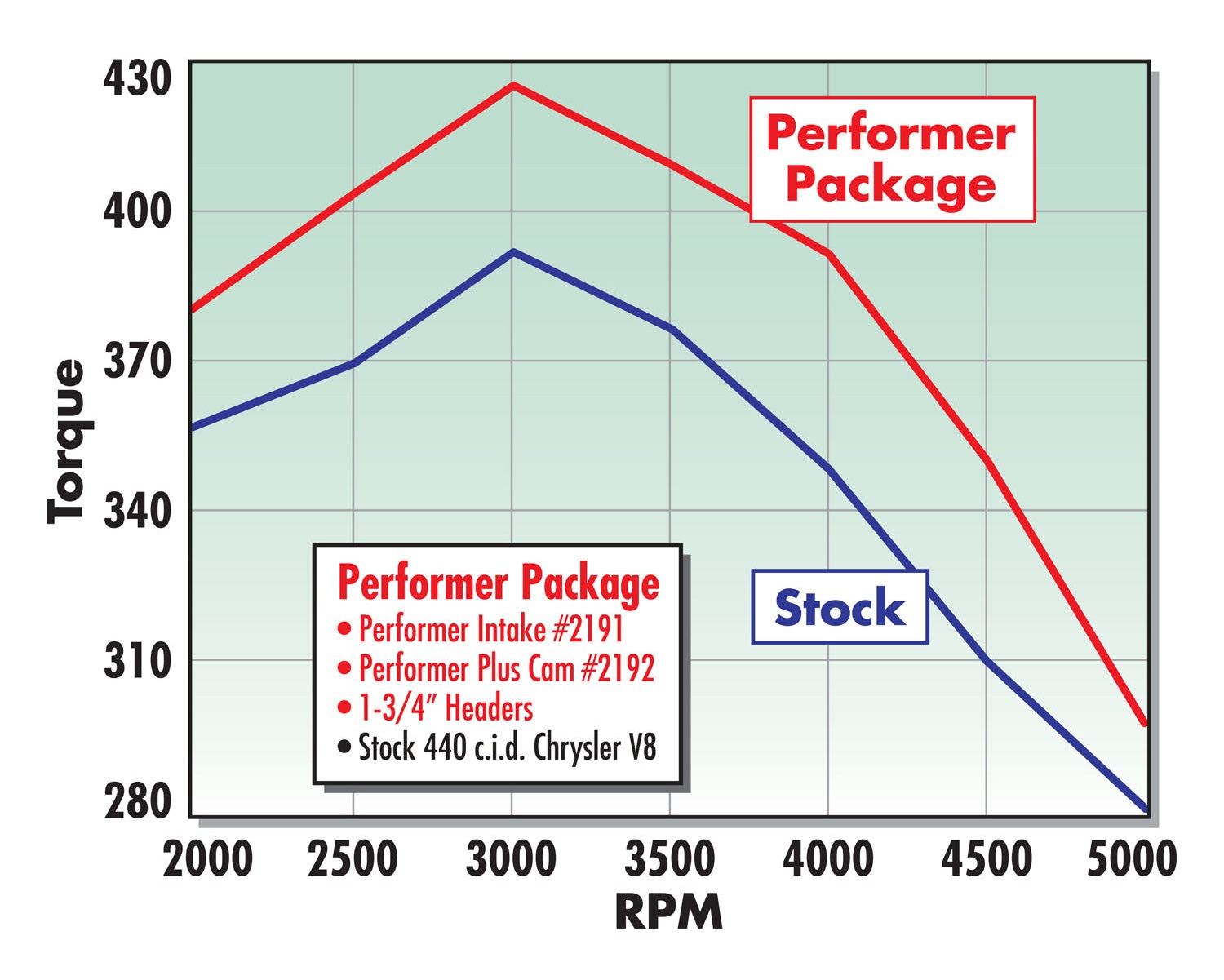 Edelbrock Performer-Plus camshaft is designed for 1968 and later big-block Chrysler 383-400-440 V-8 applications. This Edelbrock cam kit produced 427 ft-lbs. of torque when used with #2191 intake and stock iron cylinder heads on a 440 engine. The camshaft will produce optimum torque from the low-end to the mid-range, Performer-Plus camshafts match with Performer manifolds for vehicles operating from off-idle to 5500 rpm. This Performer-Plus is a smooth idling cam for daily drivers, trucks, vans, RVs and 4x4s. You can expect a major improvement in throttle response and torque. All camshafts include flat tappet lifters, assembly lube and instructions.