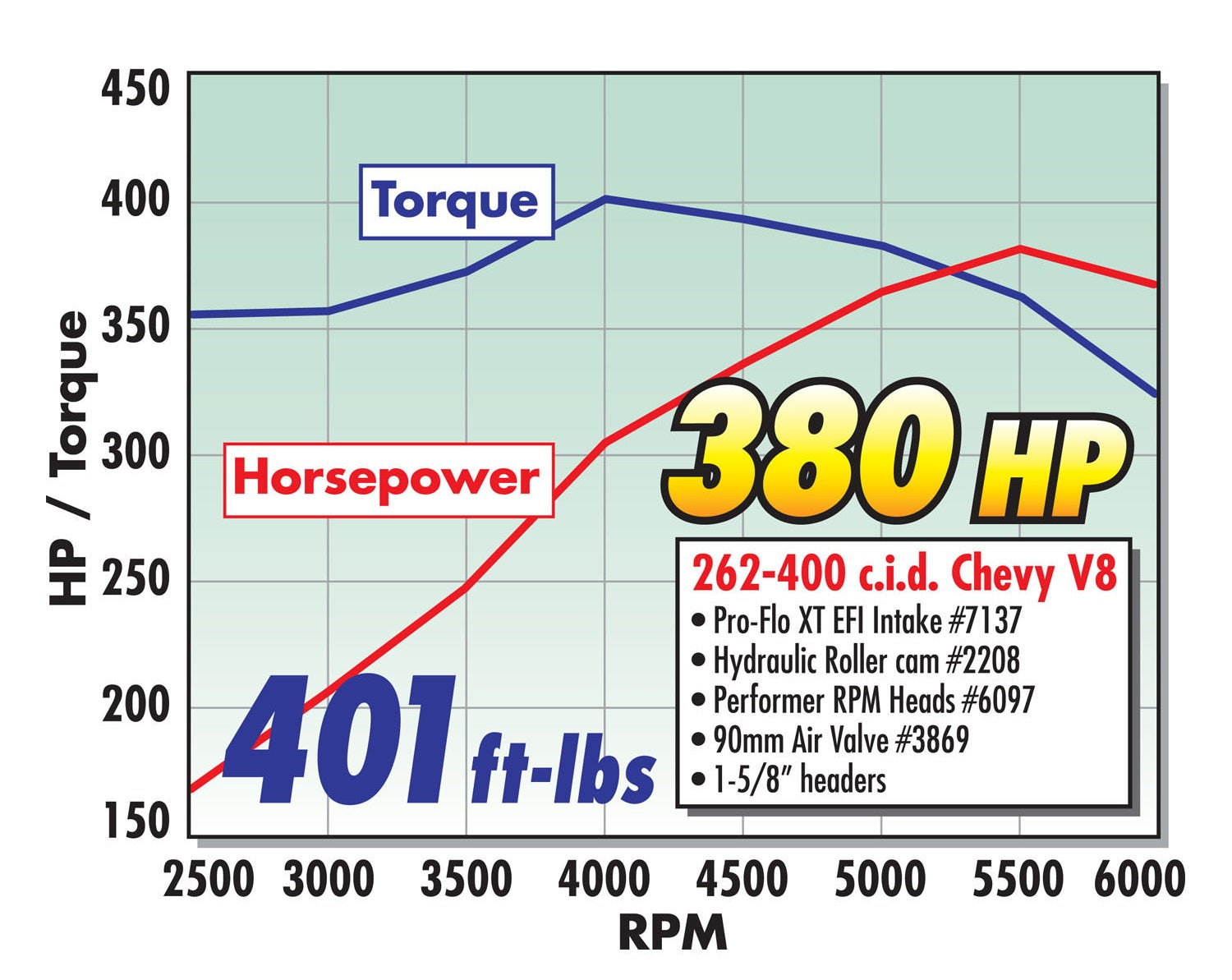 Edelbrock Rollin' Thunder Camshaft is designed for 283-400 V8 Chevy engines from 1957-1986 and produces optimum torque from the low-end to the mid-range. Rollin' Thunder camshafts should be matched with Performer manifolds for vehicles operating from off-idle to 5500 rpm. They are smooth idling cams for daily drivers, trucks, vans, RVs and 4x4s. You can expect a major improvement in throttle response and torque. In the manifold section you'll find torque graphs showing the power gains from Performer manifolds and Performer-Plus cams. All camshafts include flat tappet lifters (except for cams designed for use with stock roller lifters), assembly lube and instructions. This camshaft produced 435 HP and 435 Ft Lbs of Torque when paired with Performer RPM Air-Gap intake manifold #7516, Thunder Series AVS Carb #1813, and Performer RPM E-Tec cylinder heads #60975.