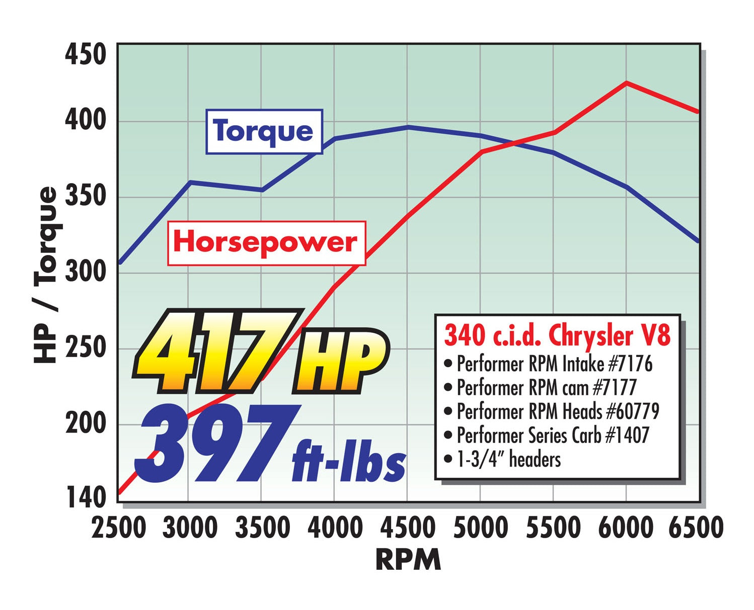 Edelbrock part #7177 Performer RPM Camshaft is designed for small-block Chrysler 318-340-360 V-8 applications. This Edelbrock cam kit produced 417 HP & 397 ft-lbs. of torque when used with #7176 intake and #60779 cylinder heads on a 340 engine. The camshaft works well with high-performance's street applications, Performer RPM cams provide power from 1500 to 6500 rpm. This hydraulic lifter camshaft is dyno-matched to Performer RPM manifolds for high-rpm horsepower while still maintaining acceptable low-end torque. With 10 to 12 inches of manifold vacuum at idle, Performer RPM cams have more lift and duration than most street camshafts. Hydraulic flat tappet lifters are included with each Performer RPM camshaft.