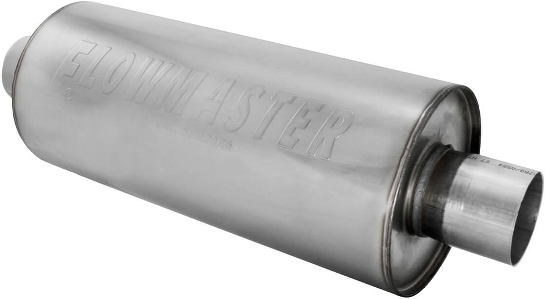 BRAND NEW FLOMASTER DBX MUFFLER, 3" CENTER IN & CENTER OUT, 409 STAINLESS STEEL NATURAL FINISH, COMPATIBLE WITH 2011 FORD MUSTANG