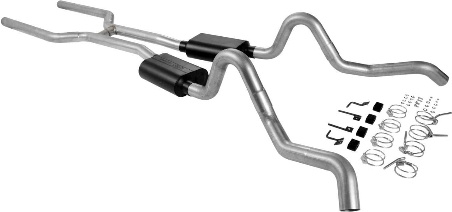 BRAND NEW FLOWMASTER AMERICAN THUNDER HEADER-BACK EXHAUST SYSTEM, 3" STAINLESS STEEL H-PIPE CROSSOVER, DUAL SIDE EXIT, COMPATIBLE WITH 1964-1967 CHEVELLE V8
