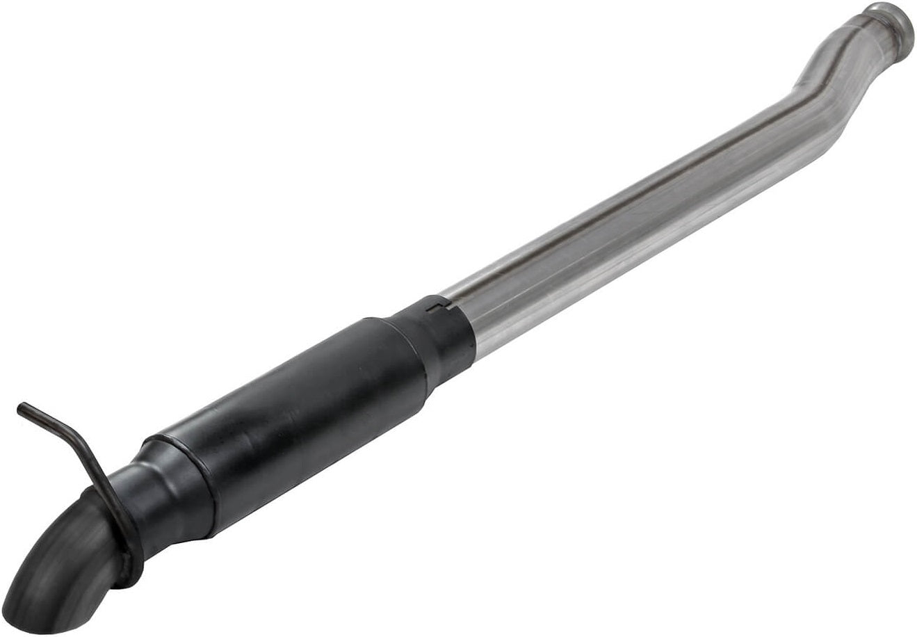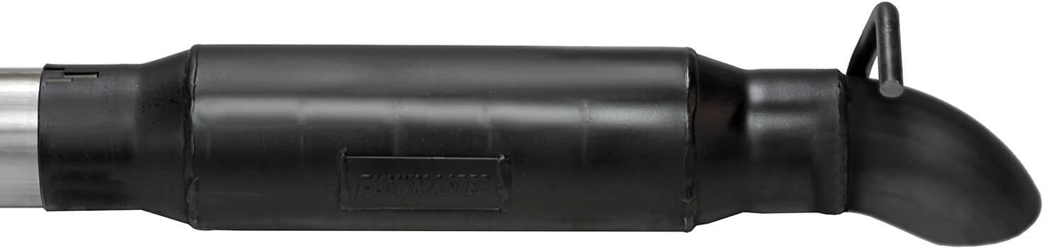 THIS SYSTEM USES AN OUTLAW SERIES MUFFLER FOR A DEEP POWERFUL SOUND & INCREASED PERFORMANCE. 3.0" MANDREL BENT 409 STAINLESS STEEL TUBING IS USED FOR MAX EXHAUST FLOW & DURABILITY. THE SYSTEM HAS A TURNDOWN STYLE DUMP EXIT RIGHT AFTER THE MUFFLER TO ELIMINATE THE OVER-AXLE TAILPIPE.