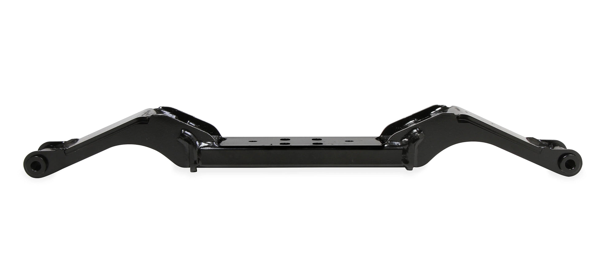 NOTE: All transmissions covered require the use of an adapter. This crossmember is designed to be installed with Hooker Blackheart Polyurethane mounts (71223030HKR in red or 71223029HKR in black), Prothane 7-1604 poly mount, or Anchor 2268 rubber style transmission mount for all transmission applications listed for this crossmember. TKO, TKX, and TR-3550 transmission extension housings that are drilled/tapped only with the Ford mount pattern will need to be drilled/tapped with the narrower pattern required to attach the above-mentioned GM-style mounts. The dual-arch exhaust passages are provided for installation of available Hooker Blackheart 2.5" and 3" exhaust systems for this application, or any custom system of your choice.