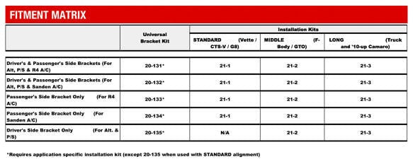 - UNIVERSAL BRACKETS FIT VIRTUALLY ALL COMMON LS ENGINES REGARDLESS OF WATER PUMP & HARMONIC BALANCER OFFSETS REDUCING COST & COMPLEXITY