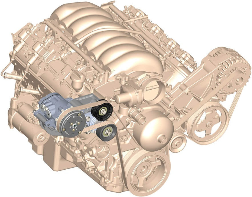 ALREADY HAVE THE POWER STEERING PUMP & ALTERNATOR SYSTEM FROM THE DONOR TRUCK OR CAR ENGINE? THESE COMPLETE A/C BRACKETS KITS MOVE THE COMPRESSOR UP HIGH & AWAY FROM THE FRAME RAIL (NO MORE NOTCHING!). INCLUDED ARE COMPRESSOR, PULLEYS & TENSIONER THAT ARE MANUFACTURED BY OE PART SUPPLIERS MANY OF WHICH ARE ON PRODUCTION CARS TODAY.