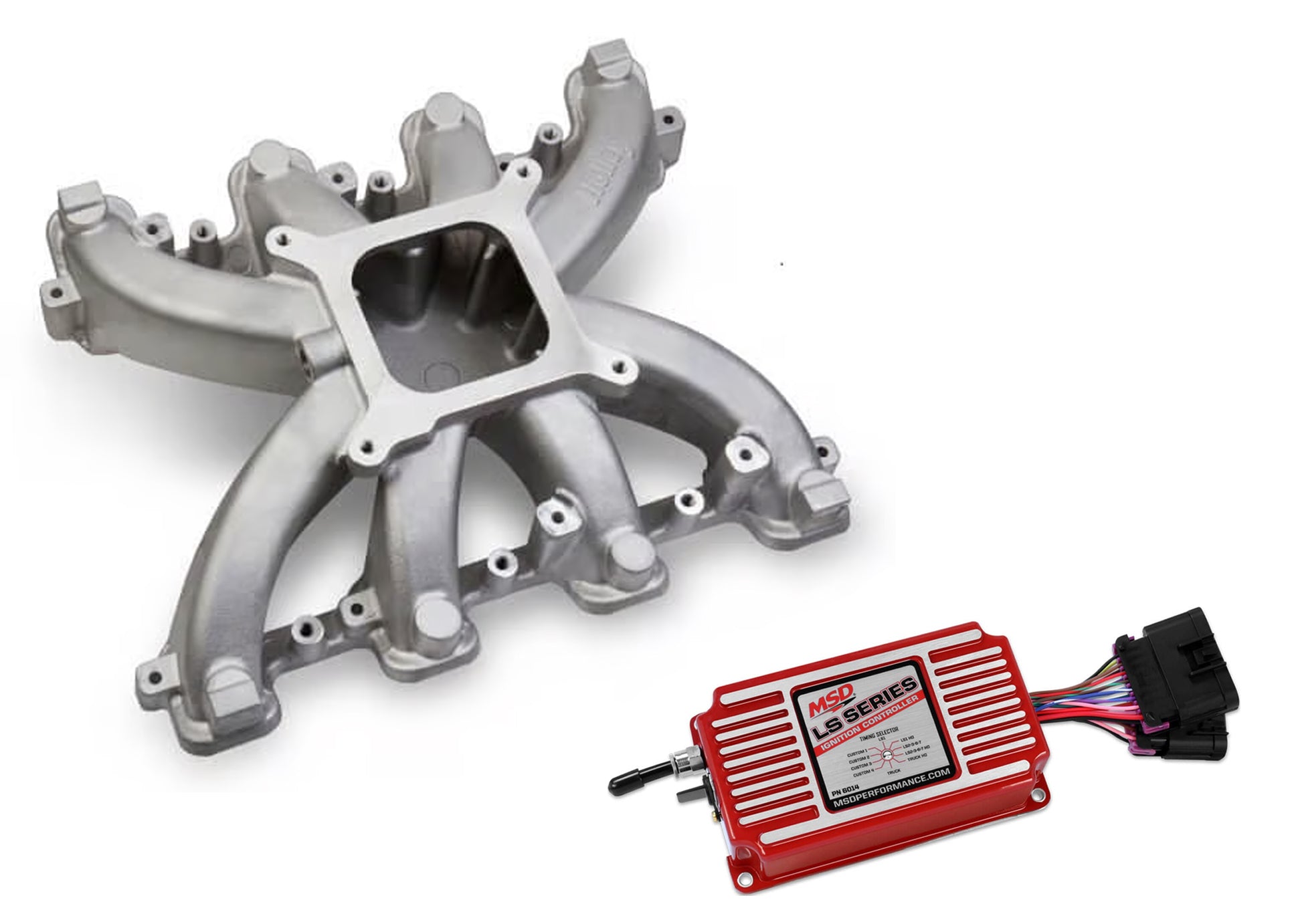 Brand New Holley Intake Manifold & MSD Ignition Controller, Compatible with Rectangle Port GM LS Engines (Part #300-131-MSD).