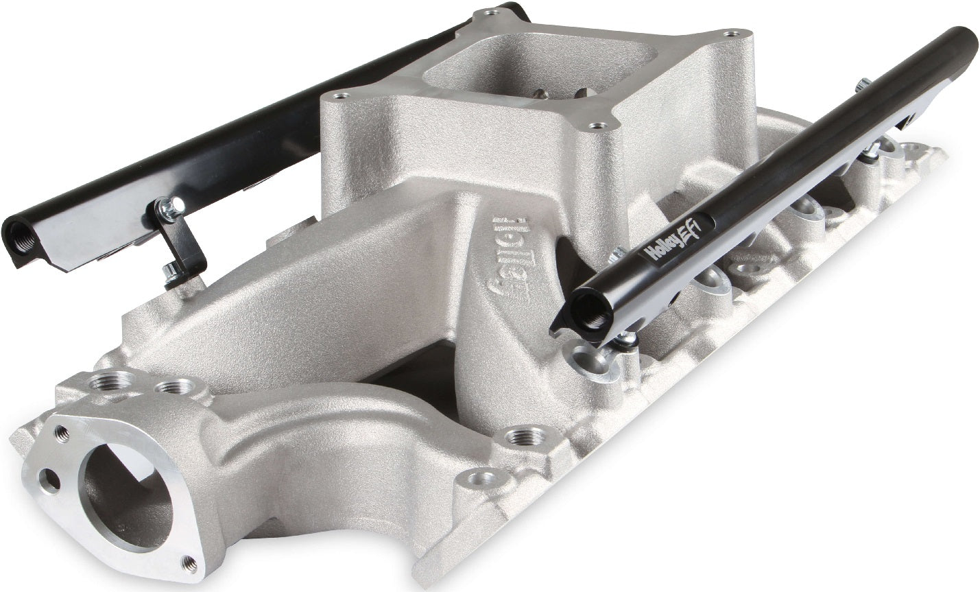 THE NEW SINGLE PLANE INTAKE MANIFOLDS ARE DESIGNED TO PROVIDE A BROAD RPM POWERBAND FOR HIGH-PERFORMANCE STREET/STRIP ENGINE APPLICATIONS TO A MAXIMUM ENGINE SPEED OF 7500 RPM. THE EFI MANIFOLD IS DESIGNED TO WORK WITH 4150 STYLE THROTTLE BODY EFI SYSTEMS LIKE THE HOLLEY 4150 STYLE FLANGE UNIVERSAL THROTTLE BODIES.