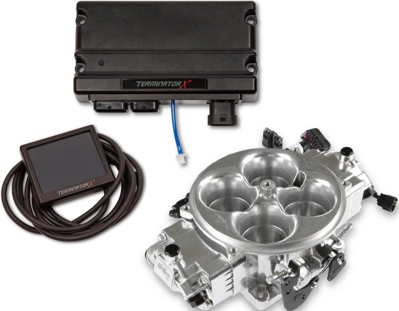 TERMINATOR X STEALTH 4500 EFI SYSTEM FROM HOLLEY FEATURES 8, 100LB/HR FUEL INJECTORS CAPABLE OF SUPPORTING UP TO 1500 HP NATURALLY ASPIRATED OR 1250 HP ON FORCED INDUCTION APPLICATIONS. FEATURES FUEL MAP SELF-LEARNING & IGNITION TIMING CONTROL, IMPROVING IDLE STABILITY, DRIVABILITY & WIDE-OPEN THROTTLE HORSEPOWER! DESIGNED TO FIT WITH GEN 3 ULTRA DOMINATOR AIR CLEANERS & FUEL CROSSOVERS, ALLOWING YOU TO EASILY CONVERT YOUR 4500 EQUIPPED 800+ HORSEPOWER DRAGSTER OR DOOR CAR!