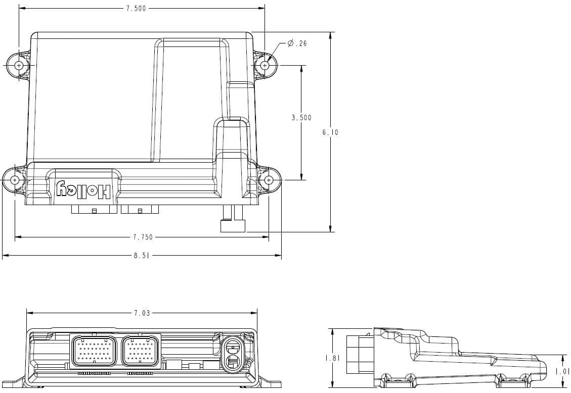 • ECU IS FULLY POTTED AND CAN BE MOUNTED IN THE ENGINE COMPARTMENT OR INTERIOR