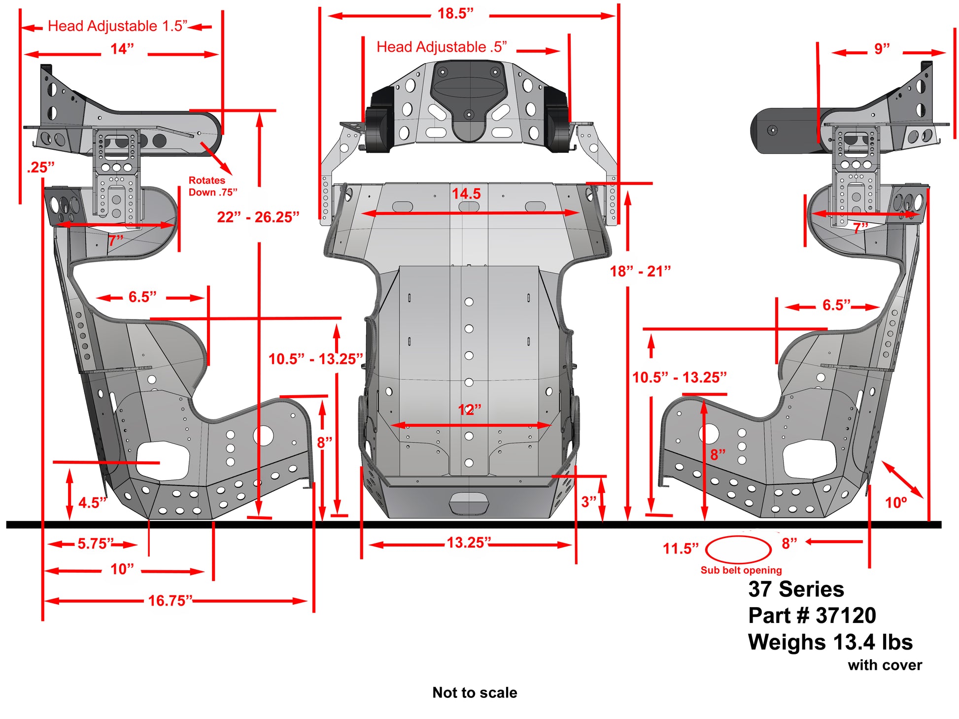 - HEAD RESTRAINT HAS 2" OF VERTICAL ADJUSTMENT, 1 1/2" OF LATERAL ADJUSTMENT, AND 1/2" OF HORIZONTAL ADJUSTMENT SO THE RIGHT HEAD PAD CAN BE MOVED CLOSER TO HELMET