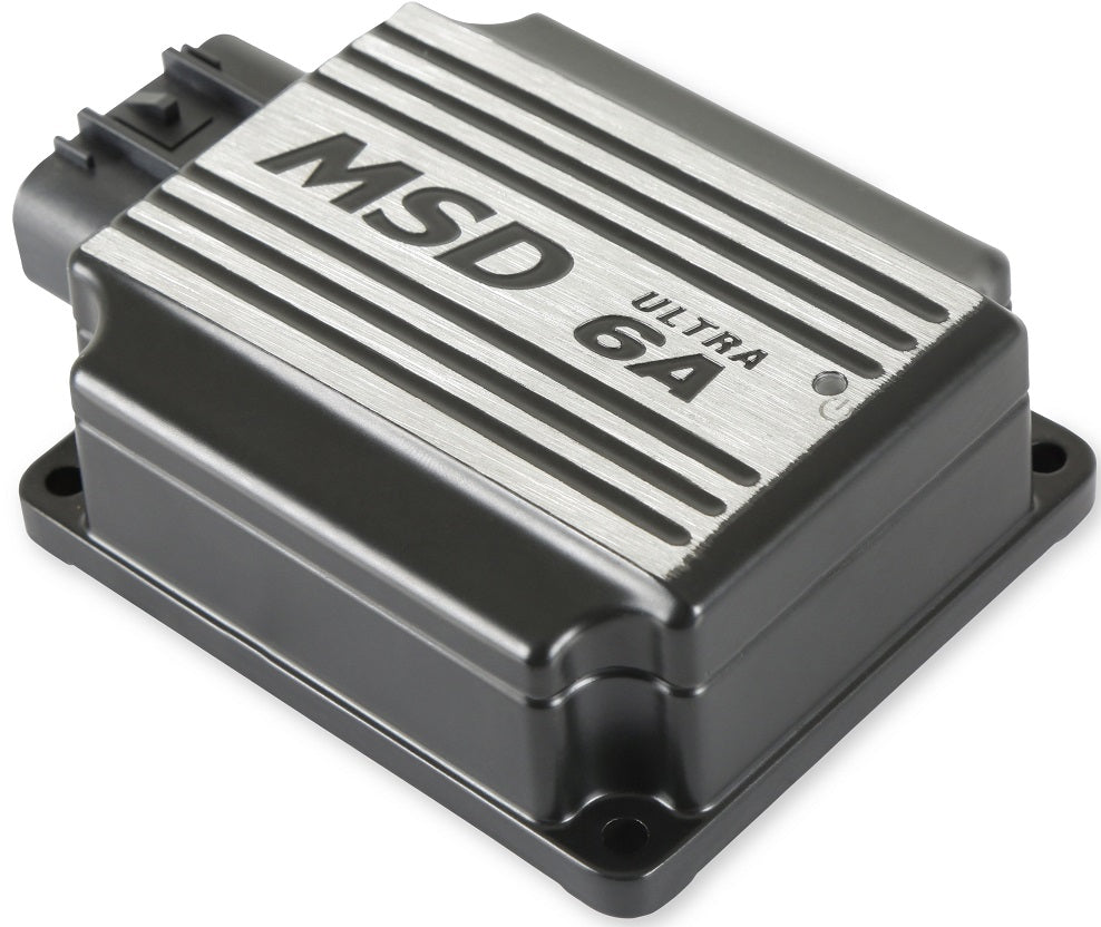 THE ULTRA 6A SERIES CONTINUES TO USE A HIGH SPEED CONTROLLER THAT CAN MAKE EXTREMELY QUICK COMPENSATIONS TO THE OUTPUT VOLTAGE, MULTIPLE SPARK SERIES, TIMING AND RPM LIMITS WHILE MAINTAINING PRECISE TIMING AND ACCURATE REV LIMITING. THE CIRCUITS AND CONTROLLER OF THE MSD HAVE BEEN THOROUGHLY FILTERED TO CREATE PROTECTION AGAINST ELECTRO MAGNETIC INTERFERENCE (EMI).