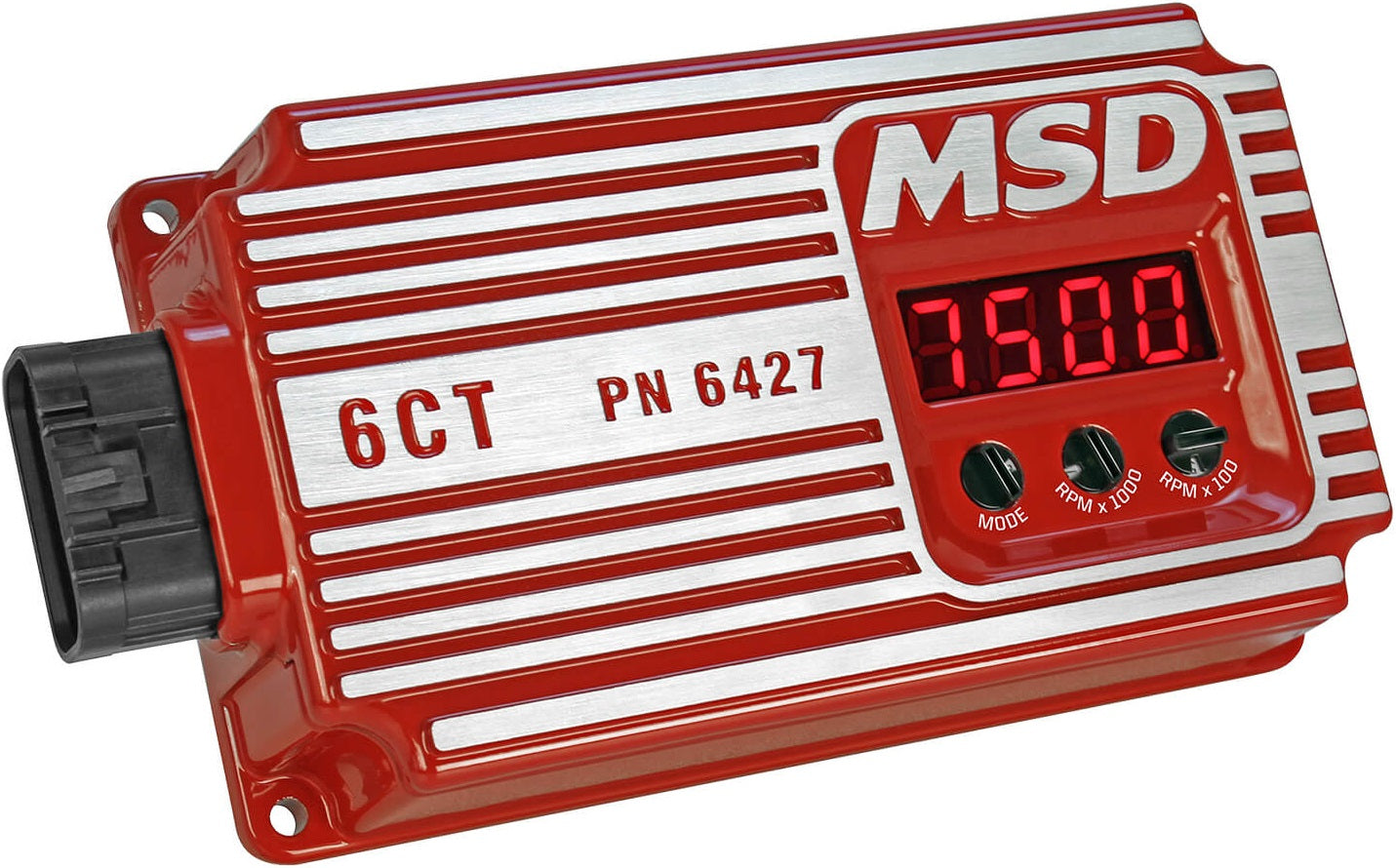 SUPERIOR DESIGN MAKES THE 6CT CIRCLE TRACK IGNITION CONTROL UNIT THE MOST ADVANCED & DURABLE IGNITION TO EVER HIT A CIRCLE TRACK. PACKED WITH LEGENDARY MSD IGNITION POWER, THE 6CT OFFERS A SLEW OF FEATURES. A LARGE DIGITAL LED DISPLAY MAKES IT EASIER THAN EVER TO SEE THE REV LIMITER SETTING WHEN DIALING IT IN USING THE LASER ETCHED ROTARY DIALS ON THE FACE OF THE UNIT.