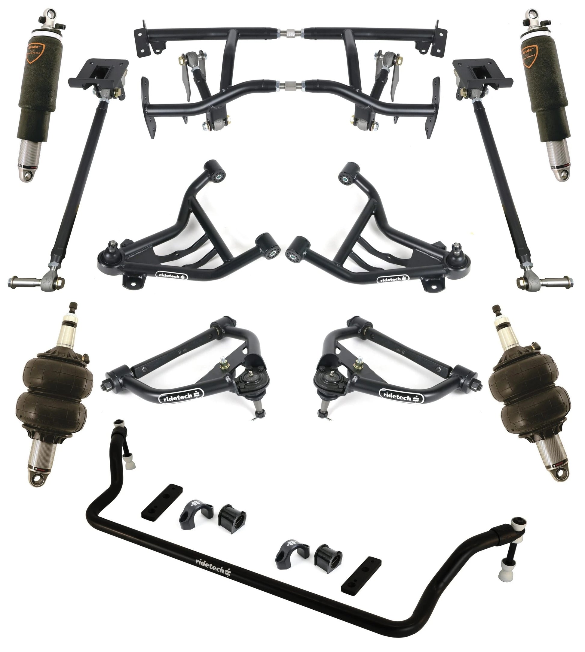 BRAND NEW RIDETECH AIR RIDE SUSPENSION SYSTEM WITH CONTROL ARMS, HQ SERIES SHOCKWAVES, FRONT MUSCLEBAR SWAY BAR, AND BOLT-ON 4-LINK (RIDETECH PART #11170296).