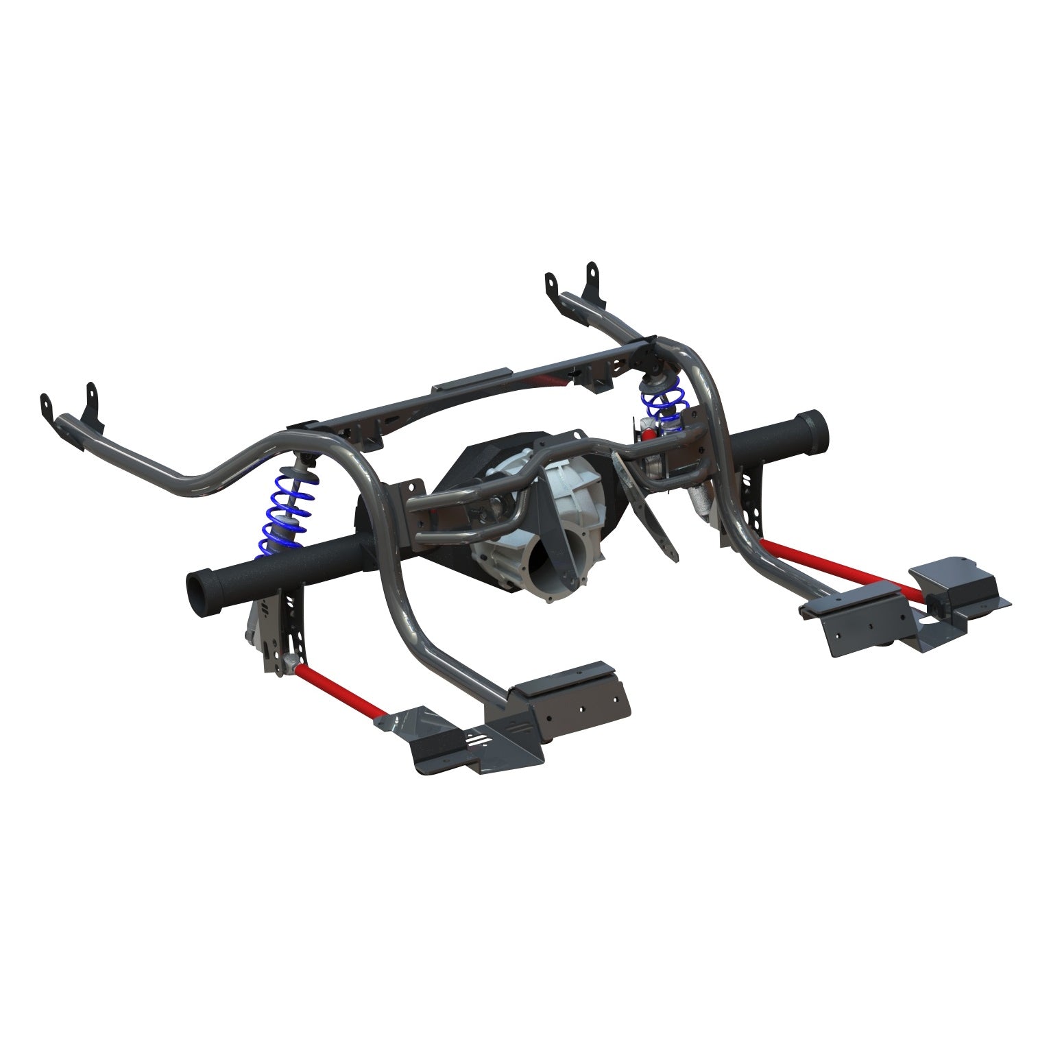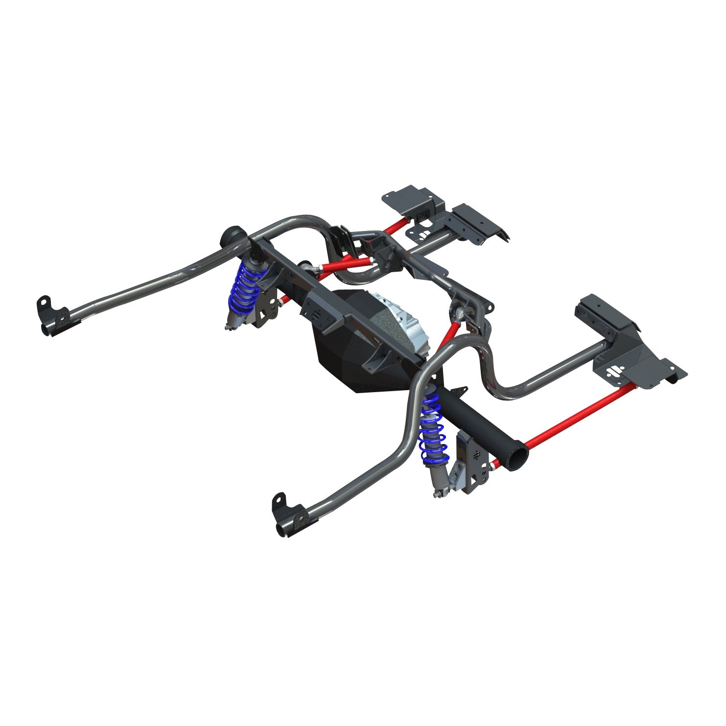 BOLT-ON 4-LINK SUSPENSION SYSTEM FOR 1970-1981 CAMARO AND FIREBIRD. THE INNOVATIVE, TRIANGULATED DESIGN OFFERS EASY INSTALLATION AND OUTSTANDING PERFORMANCE. ACCEPTS COILOVERS OR SHOCKWAVES. INCLUDES UNI-CRADLE REAR SUB-FRAME, ADJUSTABLE UPPER BARS WITH R-JOINT, NON-ADJUSTABLE LOWER BARS WITH R-JOINTS, ALL MOUNTING BRACKETS AND HARDWARE.