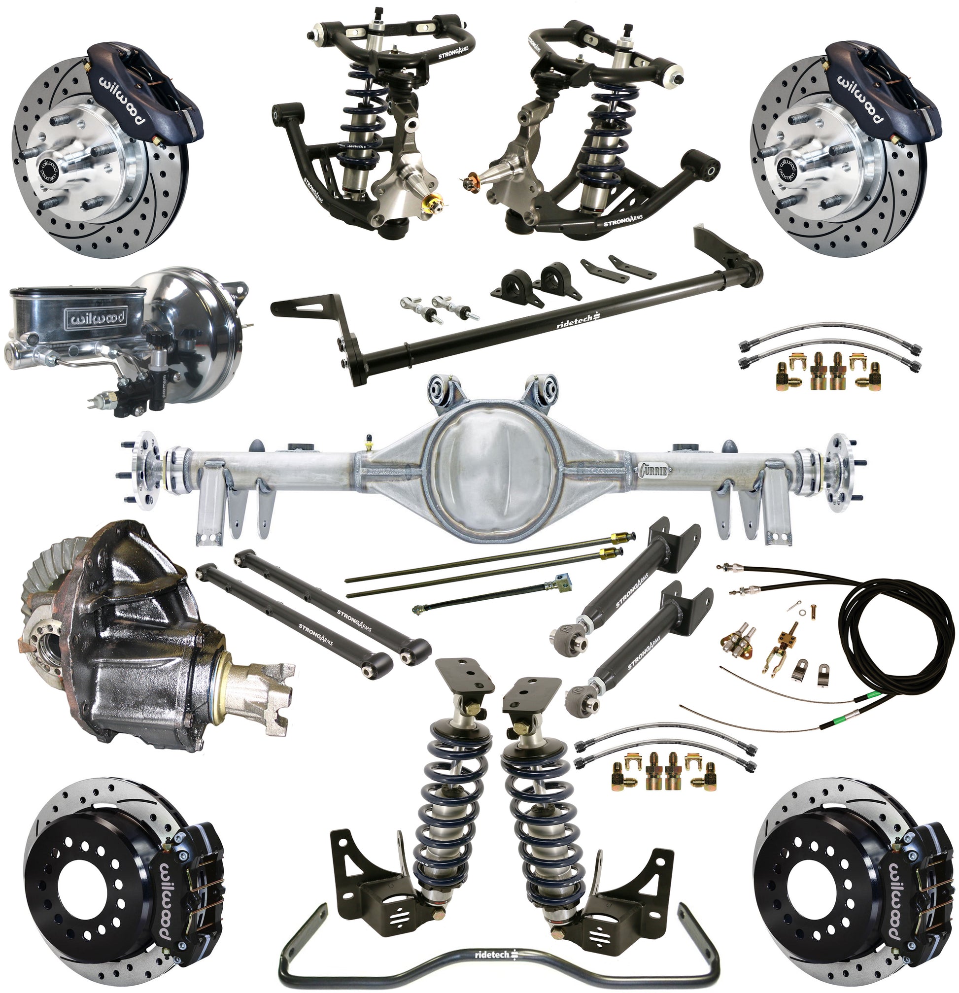 COILOVER SYSTEM,ARMS,BARS,CURRIE REAR END,WILWOOD 11" DRILLED BRAKES,BLACK,68-72