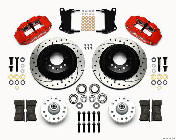 - Wilwood Front Disc Brake Kit with 12.90" Drilled Rotors and Red Calipers (140-12271-DR):