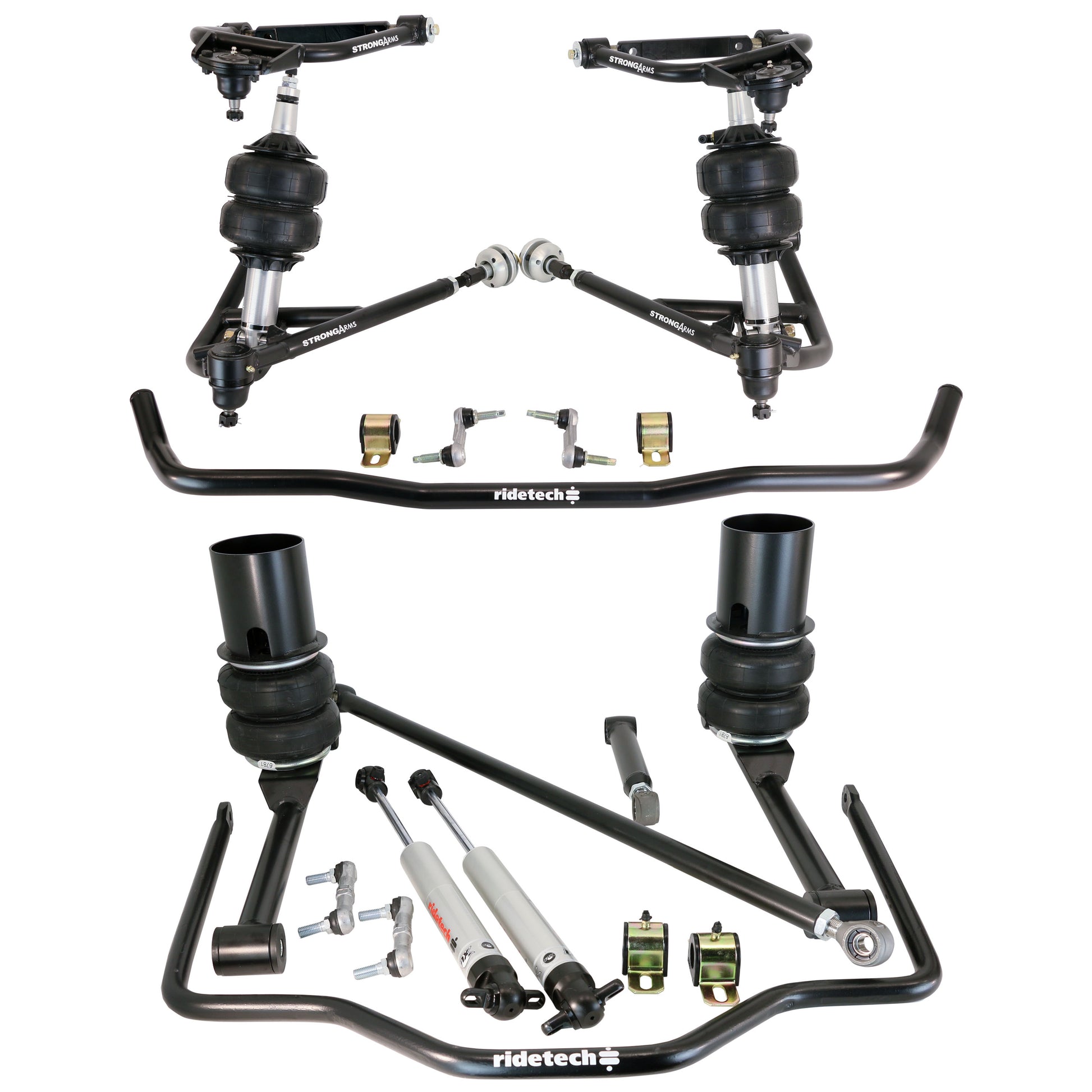 This Air Suspension kit is specifically designed for the 1965-1966 Chevy “B” Body cars and includes everything needed to provide an ultra low show stance while maintaining excellent ride quality and handling. The system contains front upper and lower StrongArms, front & rear MUSCLEbars, front HQ Series Shockwaves, rear StrongArms with Adjustable Panhard Bar, rear CoolRide and rear HQ Series shocks. The benefit of buying a complete suspension system is that it takes all of the guesswork out when purchasing a new suspension. Ridetech has spent hours collecting data to find a perfect spring rate and components for your vehicle’s performance and ride quality.