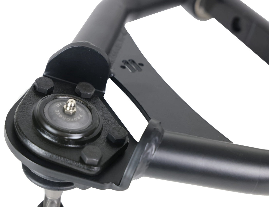 - Geometry: Properly designed control arms will add more positive caster (without a pile of shims) and will position the wheel in the wheel opening for maximum clearance. Ball joint angles are repositioned to prevent binding.