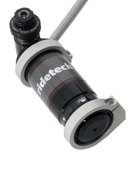 With a large 1.834″ piston, heavy duty 5/8″ shaft, and impact forged bodies, TQ Series coil-overs are built to perform and built to last. Ridetech develops our shock calibrations and spring rates through thousands of cross-country test miles, on our exclusive test track and at competition events from coast to coast. The fastest custom C3 Corvettes run Ridetech Coil-Overs and so should you. This Coilover system includes two rear triple adjustable TQ Series Coil-Over shocks with remote reservoirs on a 30″ braided line and two Hyperco coil springs with proper spring rate.