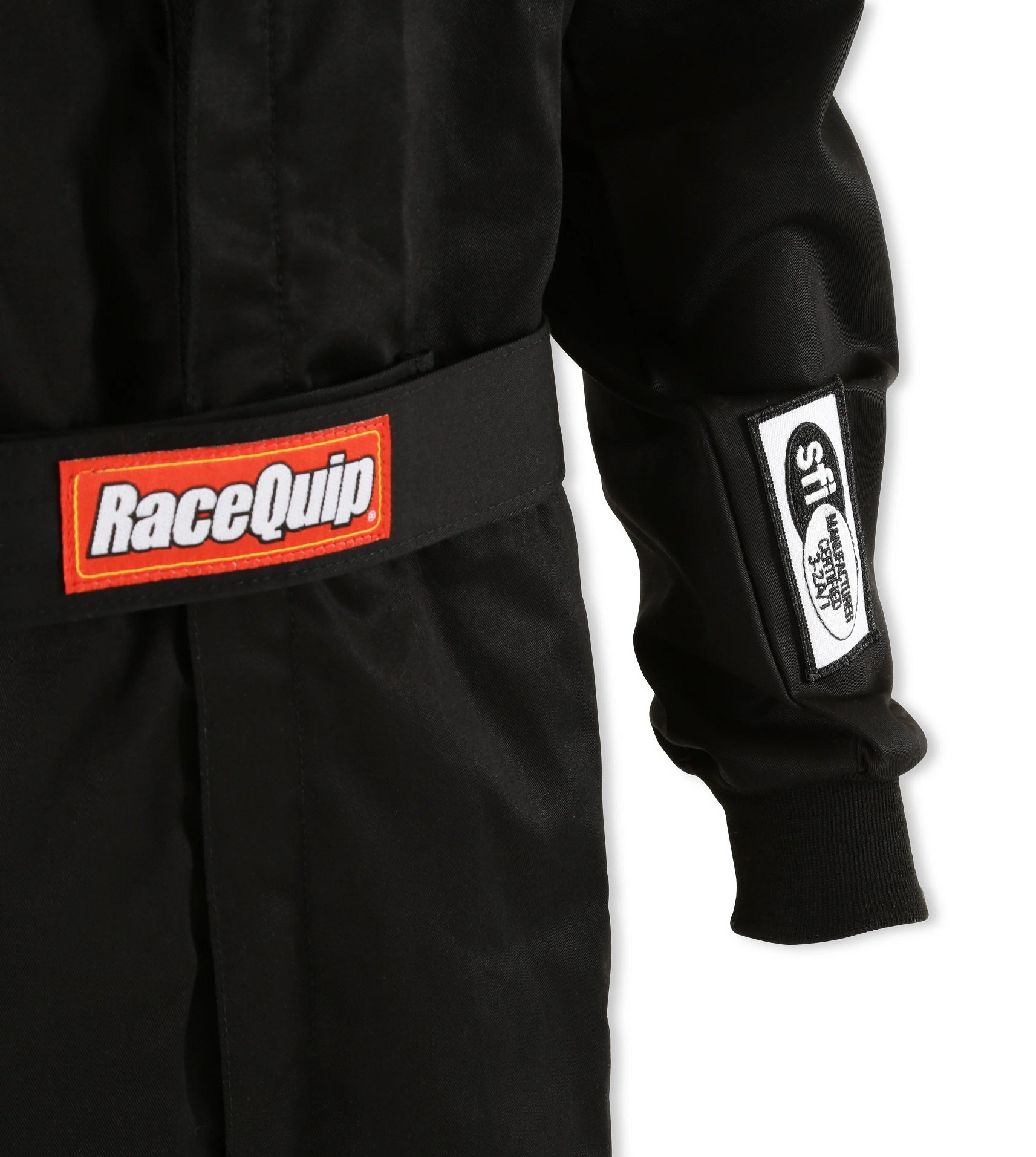 The RaceQuip 110 series single-layer SFI-1 racecar driver's fire suit is made from Pyrovatex® FRC material. Note that sometimes this material is referred to as "fireproof", but all auto racing safety gear is "fire retardant". Pyrovatex® offers the maximum combination of overall flame and heat protection, durability and comfort for the price. This fire-retardant cotton based (FRC) material is used because it retains the softness and breathability of cotton and will wick away moisture from the skin. Pyrovatex® fabric is gentle and non-irritating to even the most sensitive skin. The treatment process leaves the exterior surface shiny and supple.