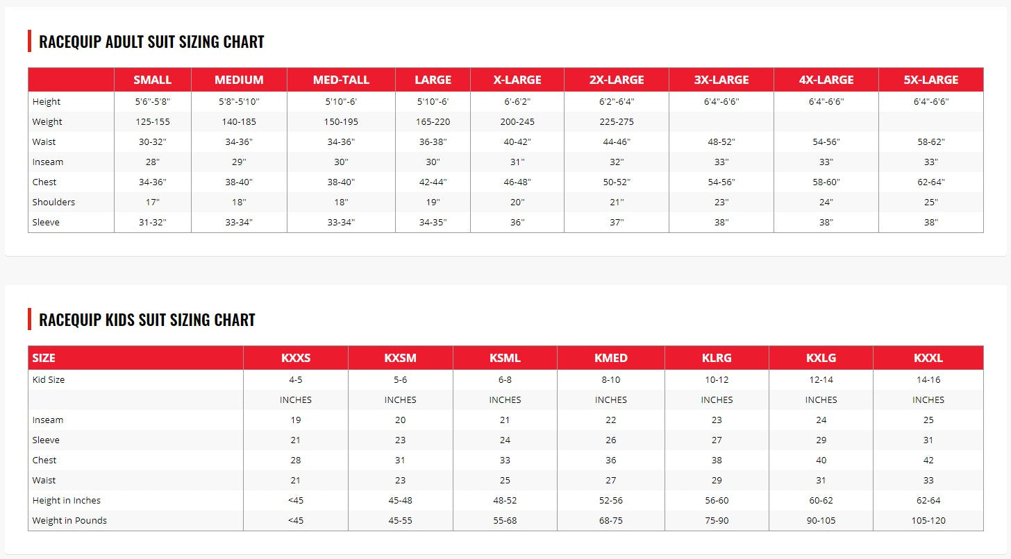 Since the Pyrovatex® process combines a chemical agent with the raw cotton fibers to create a bond at the molecular level, with proper care, the suit will retain its flame-retardant properties beyond the useful life of the garment. All racing suits are assembled with heavy-duty, multi-needle, over-lock safety stitch machines to provide exceptional seam strength. All RaceQuip suits feature a high-quality heavy duty Nomex® backed brass zipper installed with a double overlap for a more secure front opening. Stylish contrasting armband stripes match the full-length leg stripes.