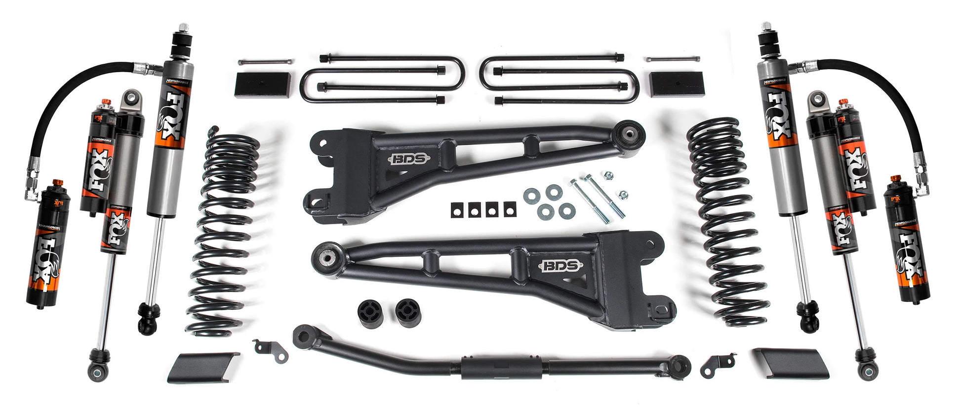Brand New BDS Suspension 2.5" Radius Arm Lift Kit with Fox 2.5 Performance Elite Shocks, Coil Springs, & Blocks (Part #BDS1306FPE).