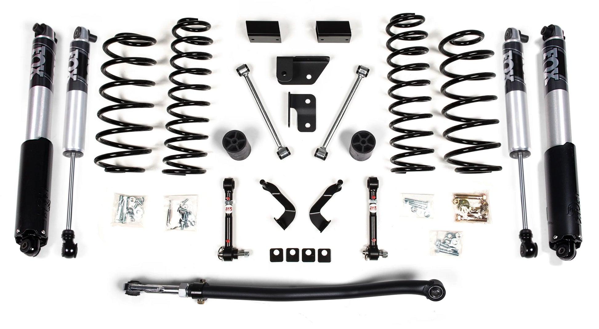 Improve the ride and style of your Jeep Wrangler JL 2 Door with this 3-inch lift kit from BDS Suspension. Designed to improve stance this kit includes everything necessary to set your truck up right with clearance for up to 37" tires at an affordable price. The lift kit includes front and rear BDS Pro-Ride Coil Springs, a heavy duty adjustable front track bar is utilized to re-center the front axle, bump stop extensions, front lower control arm cam locks, JKS quicker disconnects to unlock the front suspension's potential to flex while maintaining quiet on road operation, and rear sway bar links.