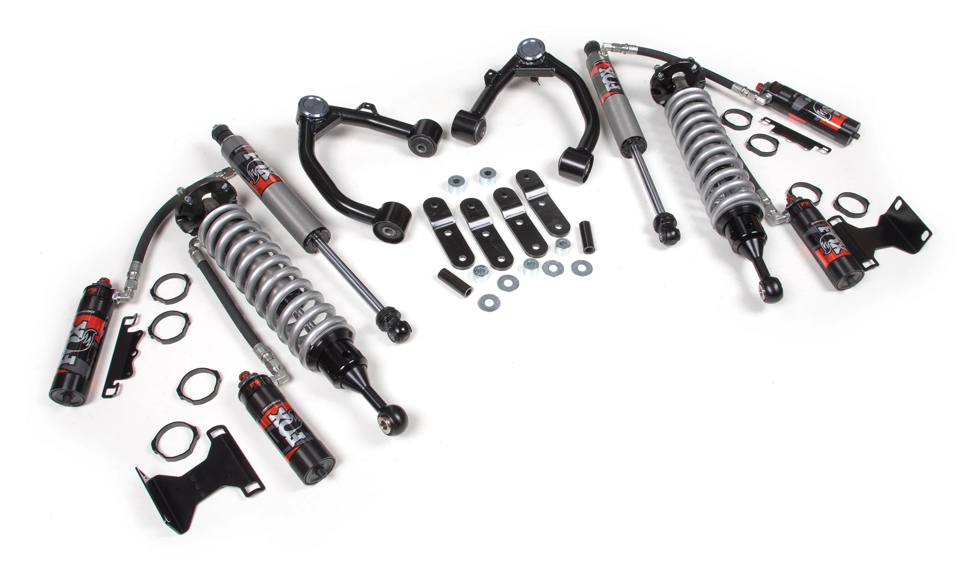 Elevate your Toyota Tundra to new heights of performance and capability with the 3-inch Lift Kit featuring BDS Upper Control Arms and Fox Performance Elite Shocks. Engineered specifically for the Toyota Tundra, this kit is your ticket to conquering off-road terrain with confidence and style. BDS Upper Control Arms are meticulously designed to maintain optimal suspension geometry, ensuring smooth operation and enhanced wheel travel. Crafted from heavy-duty materials, they provide unmatched strength and durability, crucial for withstanding the rigors of off-road driving. Paired with Fox Performance Elite Shocks, renowned for their precision engineering and race-proven performance, this kit delivers unparalleled handling and comfort. Experience superior damping control and reduced body roll, allowing you to navigate rough trails and uneven surfaces with ease. Beyond performance, this lift kit enhances the Tundra's appearance with a commanding stance and increased ground clearance. It accommodates larger tires, further boosting traction and off-road capability while maintaining factory ride quality. Whether you're exploring remote trails or simply navigating urban streets, the 3-inch Lift Kit with BDS Upper Control Arms and Fox Performance Elite Shocks transforms your Toyota Tundra into a formidable off-road machine. Upgrade today and discover a new level of adventure and reliability on every journey.