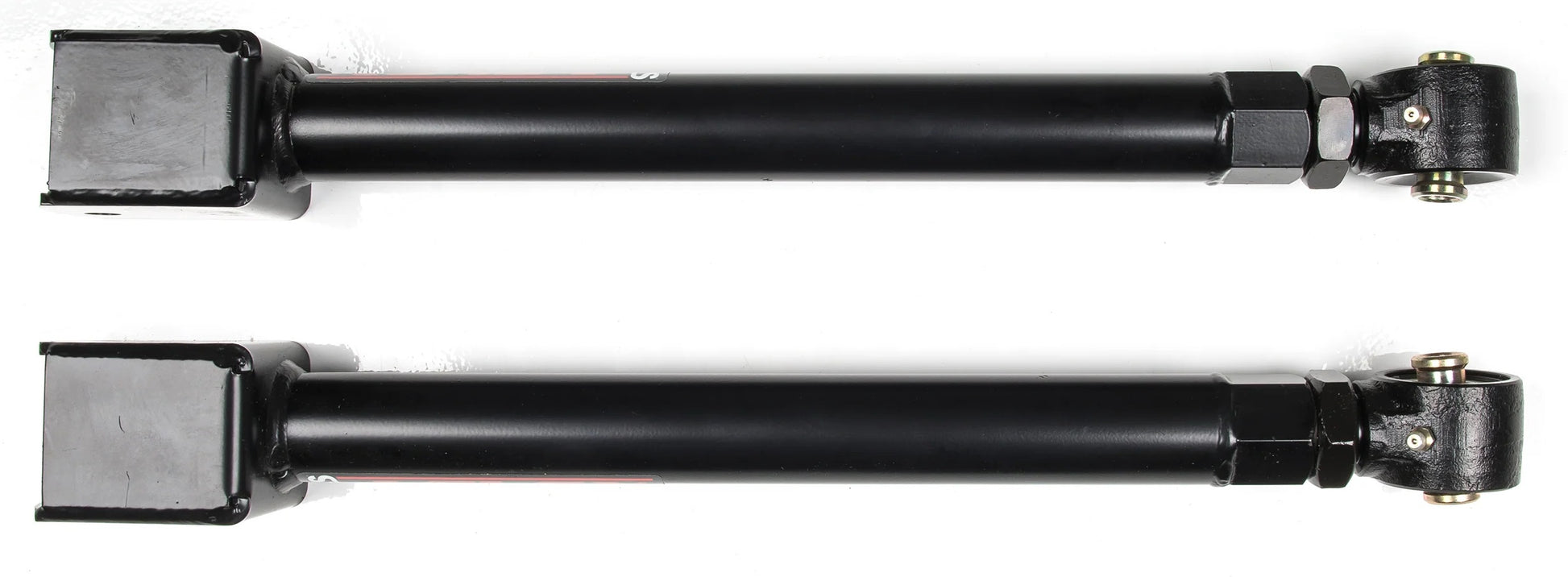 Upgrade your JK Wrangler's off-road capability with JKS J-Flex adjustable front upper Control Arms. CNC-bent from DOM tubing for proper tire, frame and axle mount clearance, J-Flex control arms feature forged "flex" ends that are adjustable. The design increases reliability and allows you to fine tune suspension geometry. The ends are also fully rebuildable and greaseable. With heavy duty 1"-14 threads and hex shaped weld-in threaded bung, tightening of the included jam nuts is super easy and secure. At the non-adjustable end, the mount is boxed for increased strength. Arms are powder-coated for a long-lasting finish. Sold in pairs.