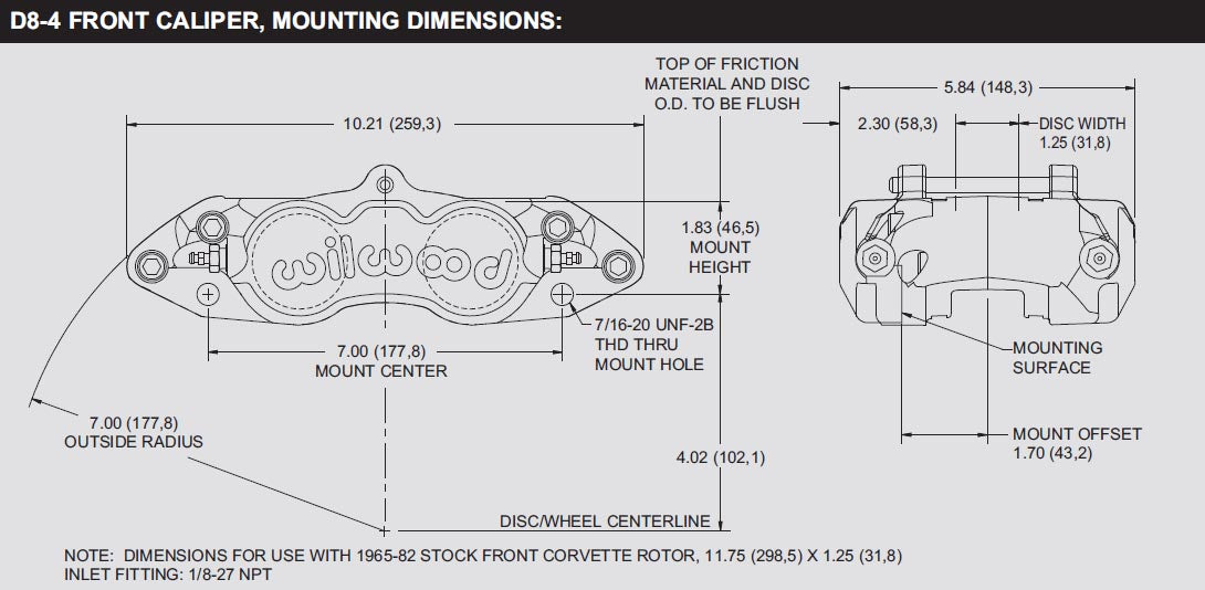 CALIPER,1.88 D8-4 CORVETTE,1.25",FRONT,RED