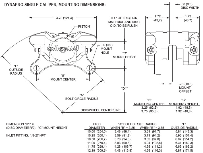CALIPER,1.75 DYNAPRO SINGLE,.19",3 3/4"