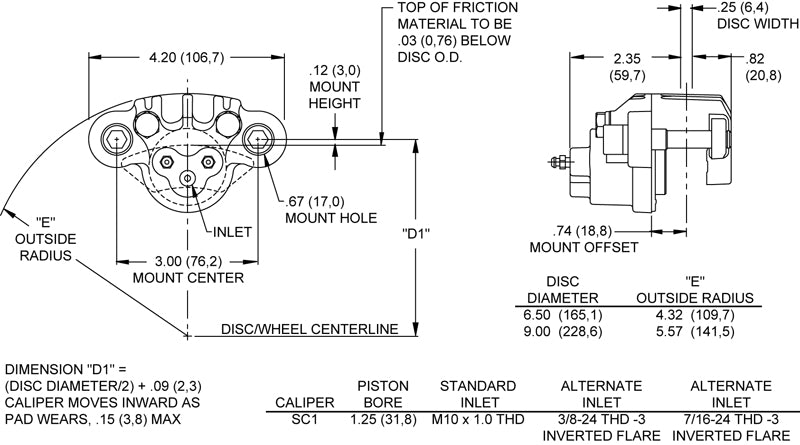 CALIPER,1.25" PISTON SC1,.150>.250" DISC