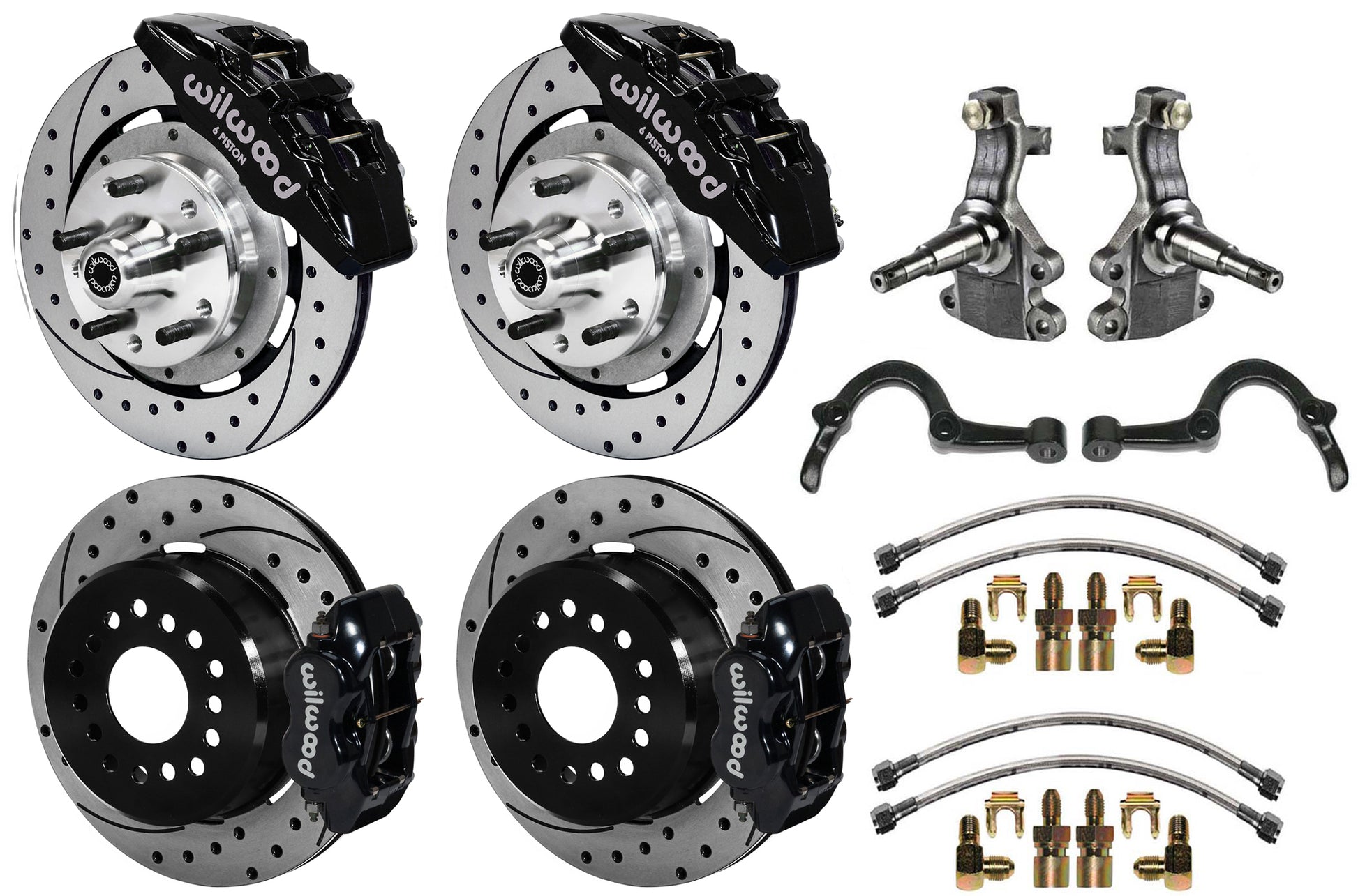 BRAND NEW WILWOOD FRONT & REAR DISC BRAKE KIT WITH 2" DROP SPINDLES, STEERING ARMS, AND STEEL BRAIDED LINE KITS.